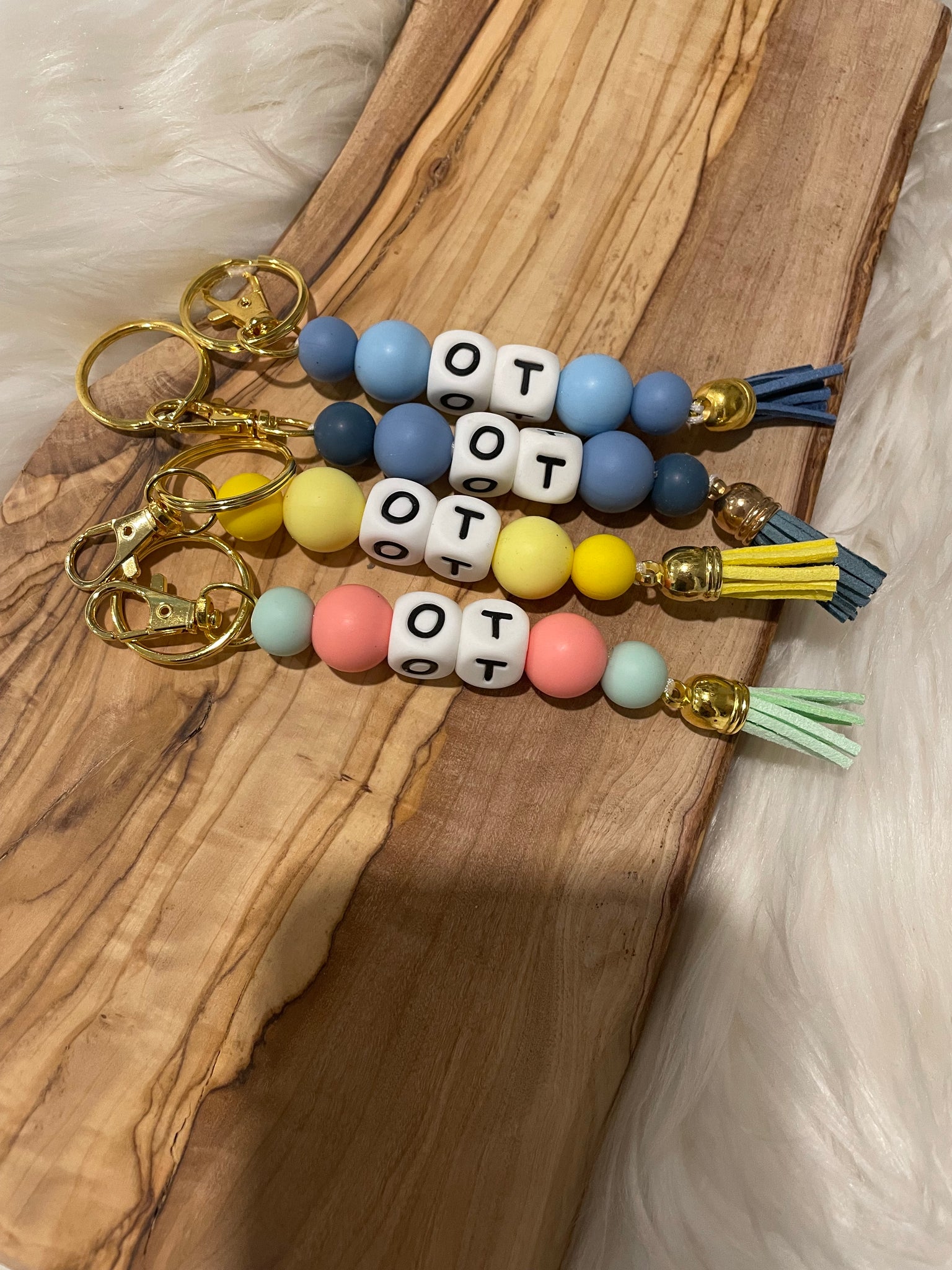 - In the photo listing is colour options -- please enter your bead colours in the notes at checkout. If choosing more than one keychain please include name with colours.