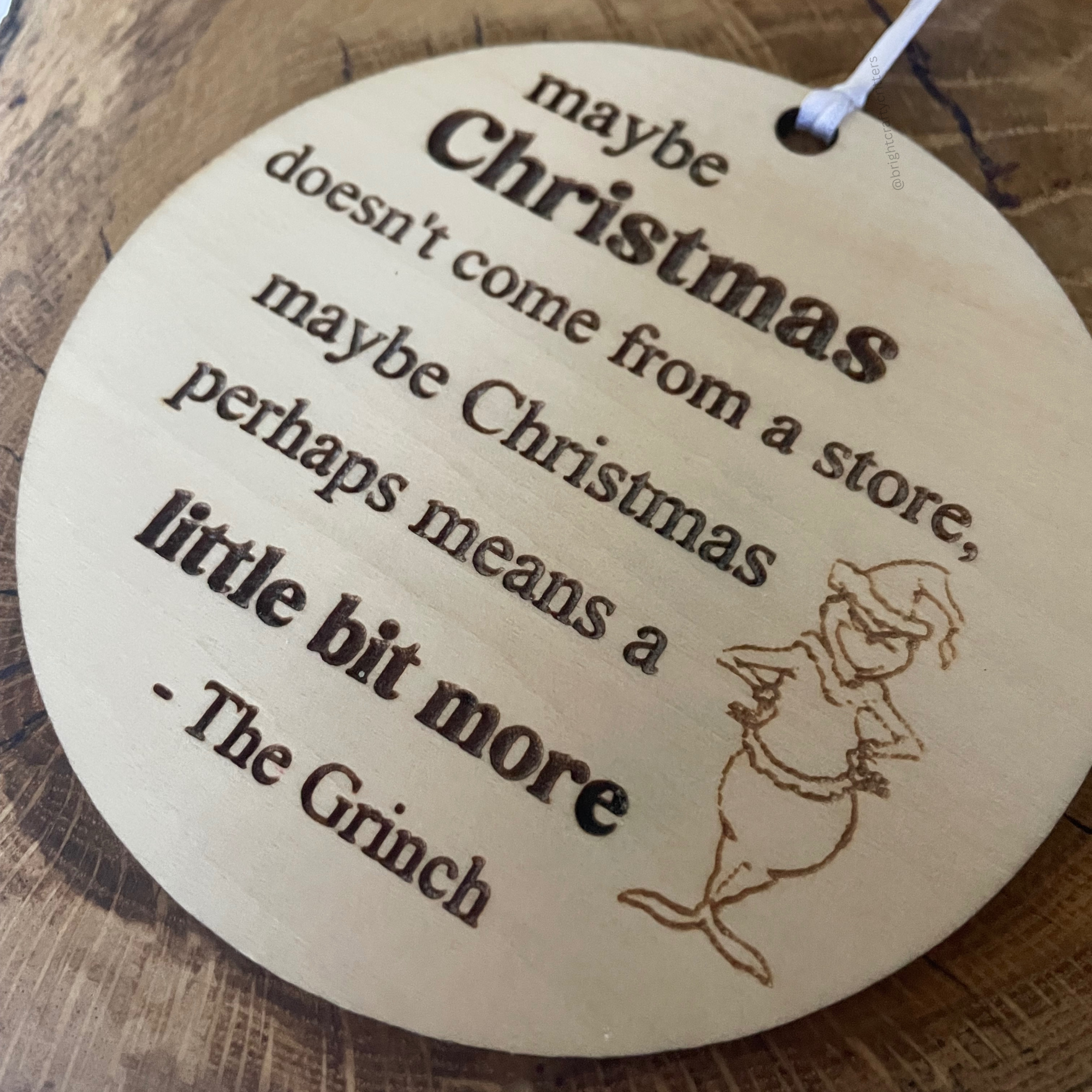 Laser engraved writing. Maple wood 1/8” thick - 3.5” round. White satin ribbon.