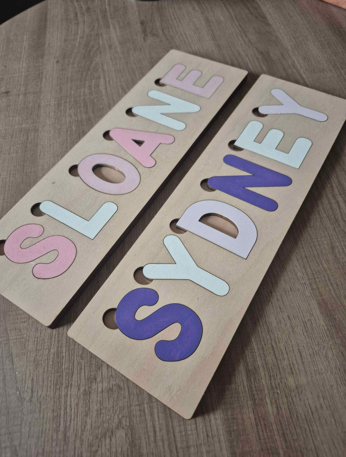 -Puzzle length will vary depending on the length of the name. E.g. Leo will be shorter than Brooke. Each puzzle is designed based on the height. Hand painted with non toxic paint.